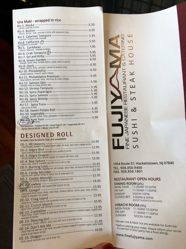 Fujiyama Menu (2025 Update)